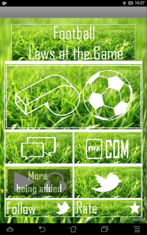 التطبيق يتابع و يعرض كل جديد فى عالم قانون كرة القدم و يعرض مواد القانون و امثله فعليه على كل مواد القانون و ذلك بالاضافة للمزيد من المميزات الرائعه و المفيده